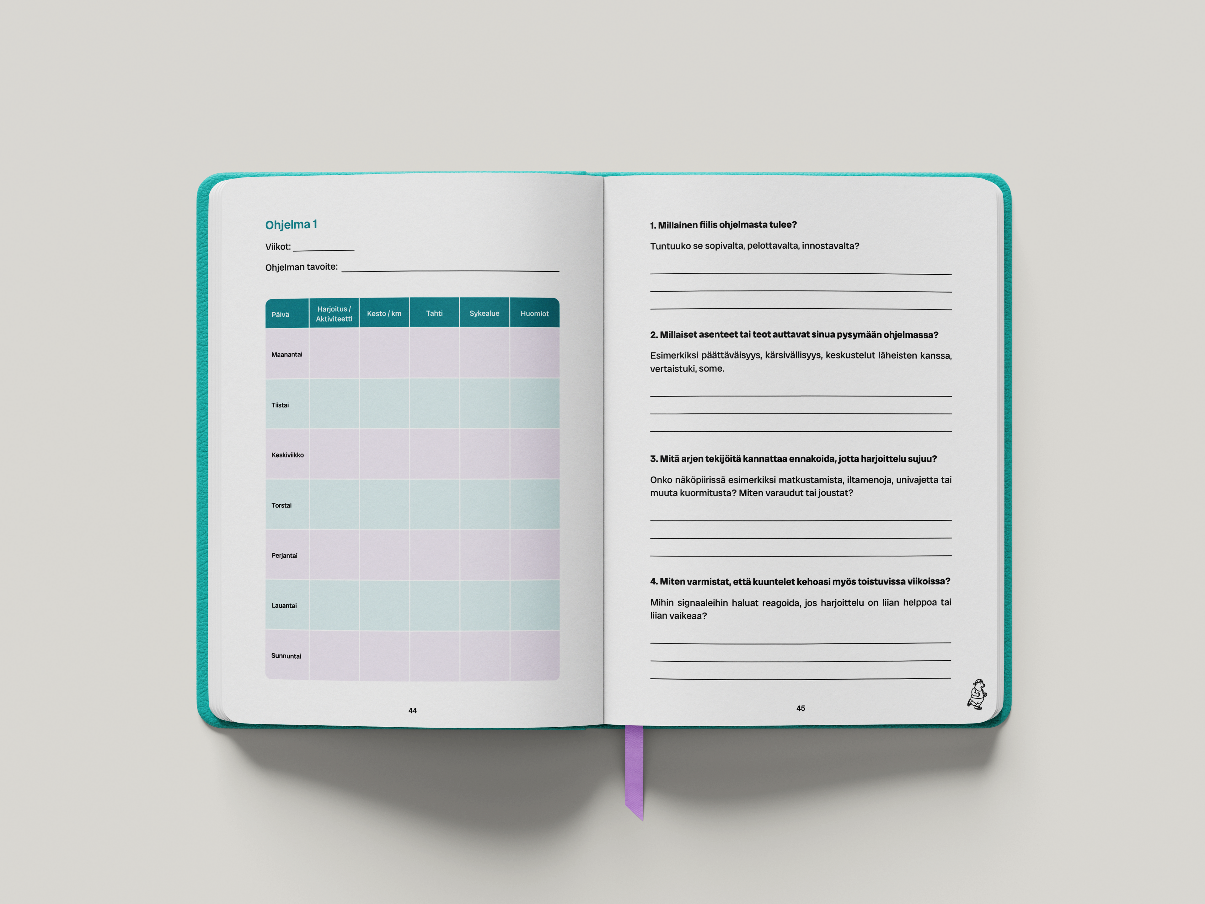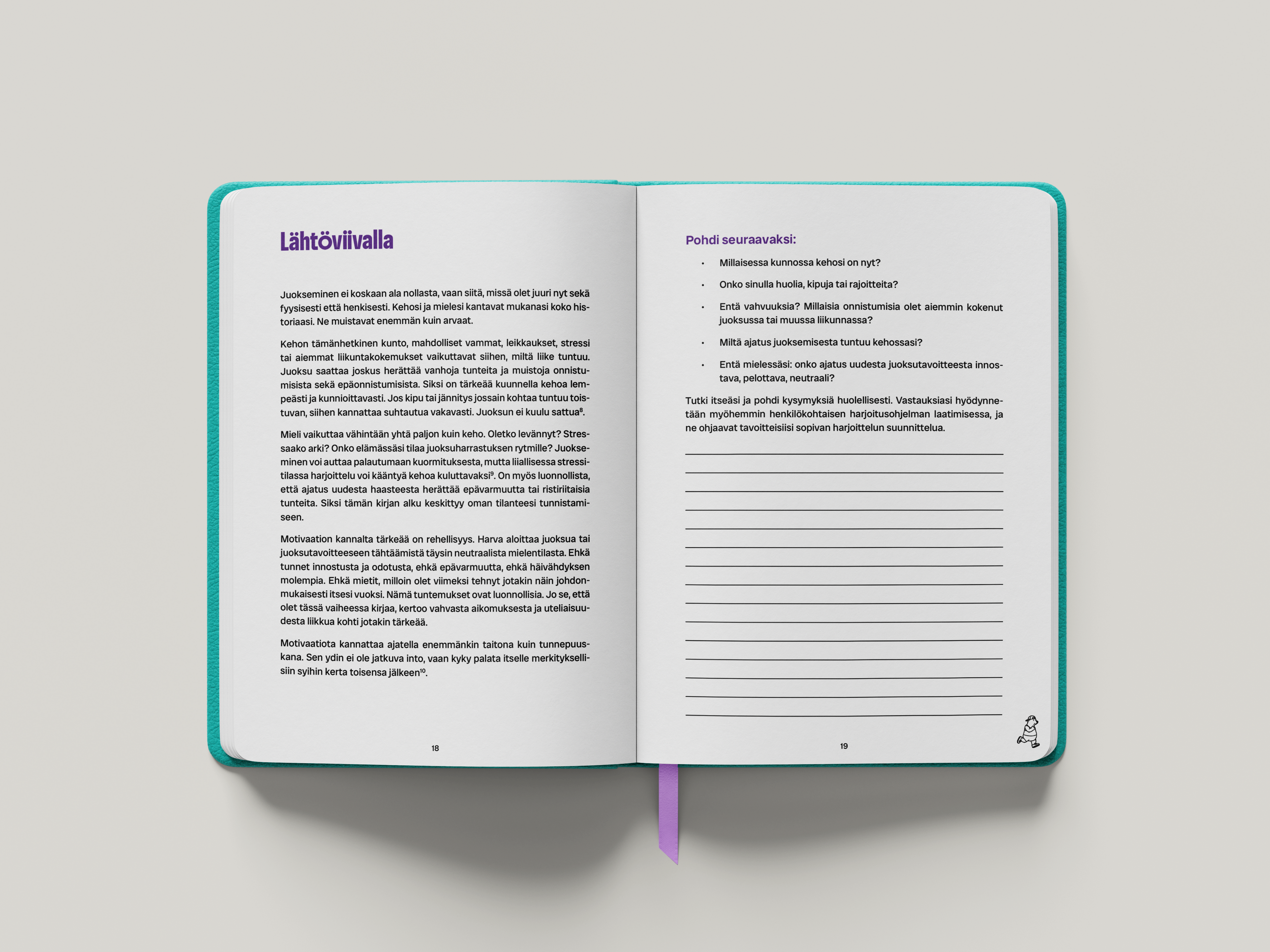 Juoksukirjan avulla saat selkeyttä harjoitteluusi ja kehityt juoksijana. Kirja yhdistää harjoittelun, mielen hyvinvoinnin ja oman päiväkirjan yhdeksi inspiroivaksi kokonaisuudeksi.